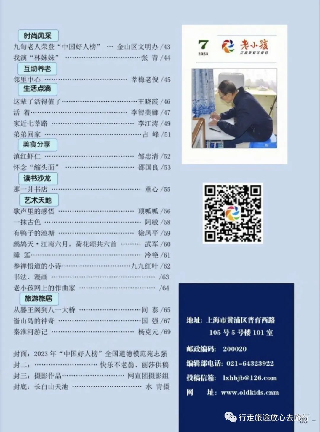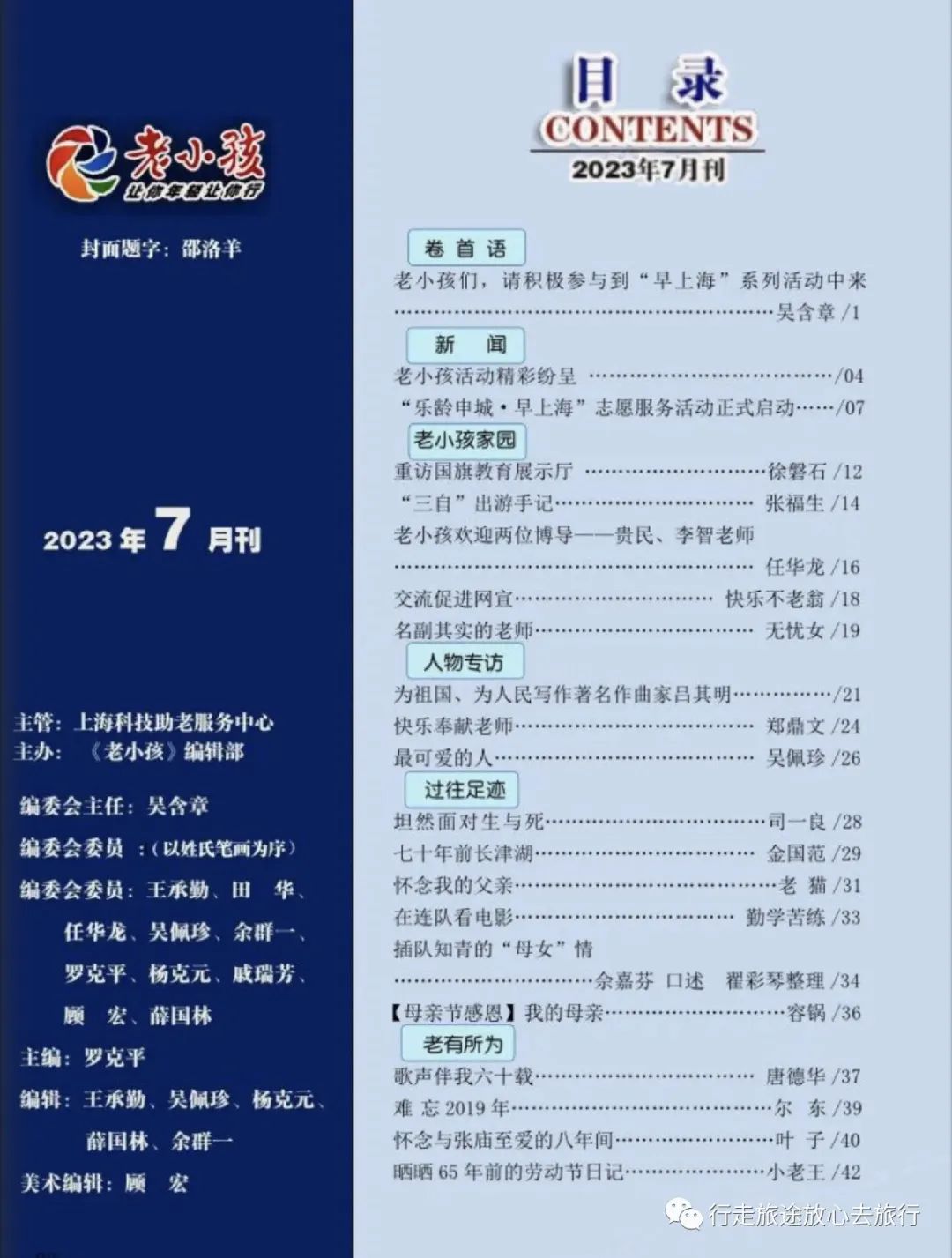 本期杂志信息量大,贴近性强,介绍了著名作曲家、“七一勋章”获得者吕其明,老小孩群体中受大家敬重的任华龙老师,有抗美援朝战士的回忆录,介绍了上海首个国旗教育展示厅,展现了老小孩们丰富多彩的业余生活,以及“老有所学,老有所乐,老有所为”,在文学、摄影、音乐、书法、绘画等多方面的多才多艺。