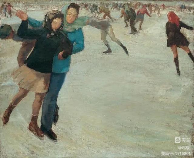 李瑞年的油画《什刹海冬天》等,都是其中的代表。这些作品之所以聚焦滑冰,而非其他体育运动,是在于滑冰运动广受欢迎,在创作中更能呈现出美的形式和意味。