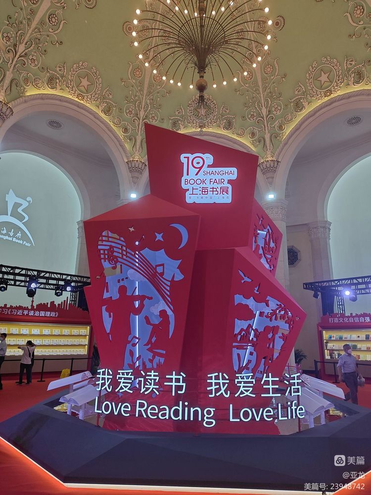 正厅中的书展主题:我爱读书,我爱生活。
