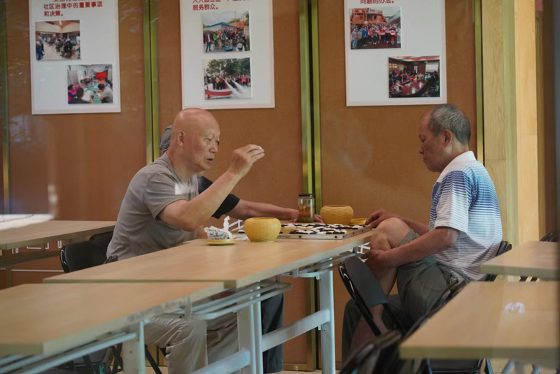 两位居民正在“小木屋”里对弈。谢鑫摄