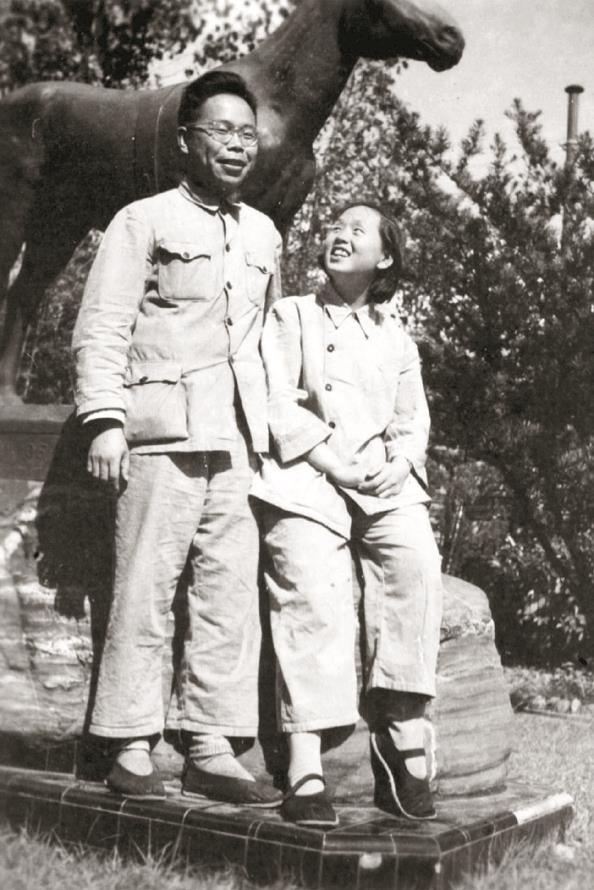 解放初,青年钱李仁与夫人郑韵,在富民路上海团市工委院子里的合影 钱亚飞 供图