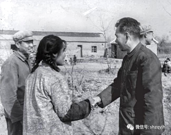 (1974年11月28日,上海市革委会副主任王一平(右)到固镇县仲兴公社丁庙大队看望慰问上海知青:徐苏穗(中)、莫大琛(左)。《青春记忆·知青老照片——上海知青在安徽》第228页)