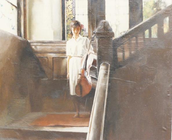 房间里弥漫着油画的气味。茶几上放了瓶凋零的玫瑰。天蓝色花瓶下已撒满枯叶,好像生命都被画架上的油画吸取了。那是我一生最难忘一幅画。与当时外面看到画完全不同。那几笔颜色,简直令人佩服得五体投地。如是误入天堂的罪人,无法形容自己的幸运。