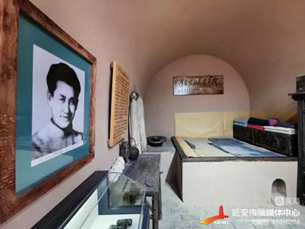 这里原本是一户闫姓房主的宅院,占地面积约800㎡,始建于清光绪年间,是一进前后两院。前院右侧是3孔石窑洞,是警卫连办公、住宿的地方,窑内玻璃柜里摆放着当年的被褥、服装和兵工厂自制的枪支、大刀等文物。后院是6孔石窑洞,分别是红军领导人以及房东的旧居和马棚、马灯、马槽等。正前方是习仲勋的旧居,窑内左边墙上悬挂着他21岁时,当选陕甘边苏维埃政府主席,英俊、帅气,穿军装时的照片,下面玻璃柜里摆放着他曾阅读过的书籍和战斗生活用过的遗物。正面墙上挂着毛泽东一九四三年一月十四日为他赠写的题词: