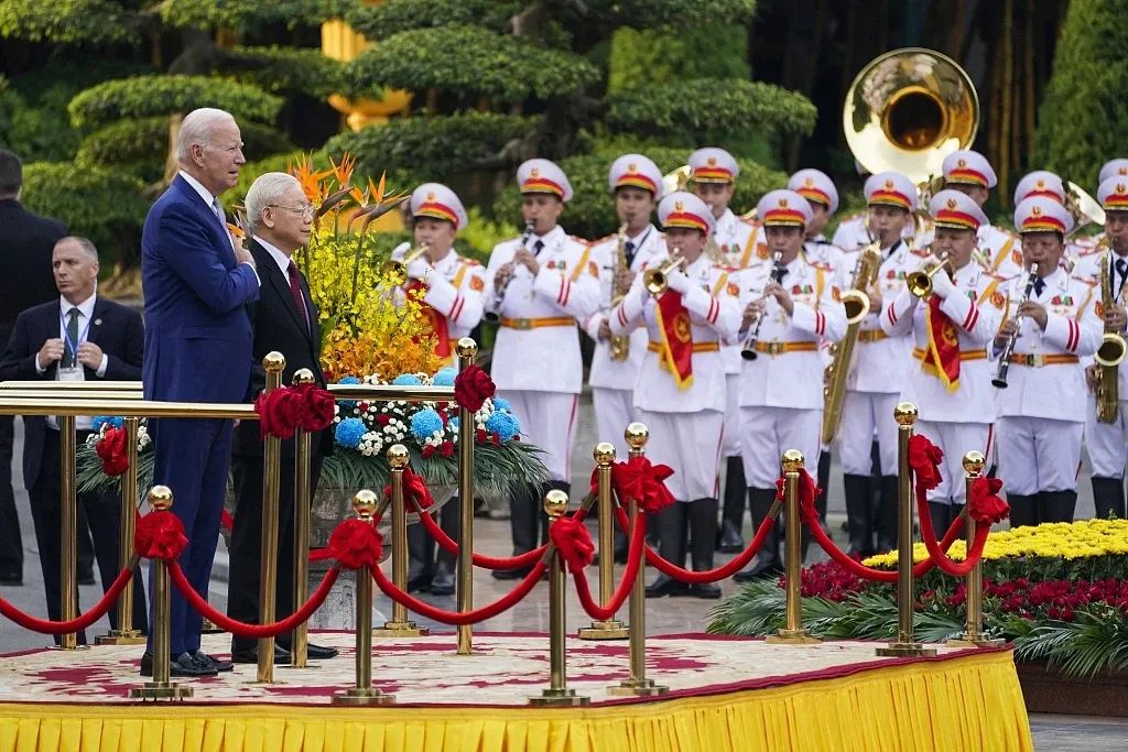 拜登志得意满地宣称美越两国是在“关键时刻”的“关键伙伴”,鼓吹“两国有机会在未来几十年塑造印太地区”,从而“将开启一个更大合作的时代”,似乎越南国土上曾经遗留的毒气炸弹和被美军屠杀的无辜平民也被拜登轻描淡写地抹除,“越南”从美国重要的军事地图,换成了重要的外交地图。