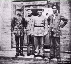 斯诺拍摄的博古、周恩来、朱德、毛泽东(1936.7)