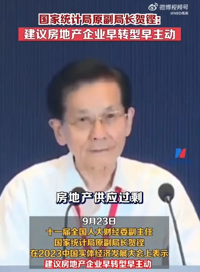 据媒体报道,9月23日,十一届全国人大财经委副主任,国家统计局原副局长贺铿在2023中国实体经济发展大会上表示,“现在房地产供应过剩,空置的房屋究竟有多少,各个专家估出来的数字相差很大,14亿人可能住不完。这么多空置房子再要大力发展房地产是不明智的,所以在这种情况之下,房地产企业必须转型,早转型早主动。”