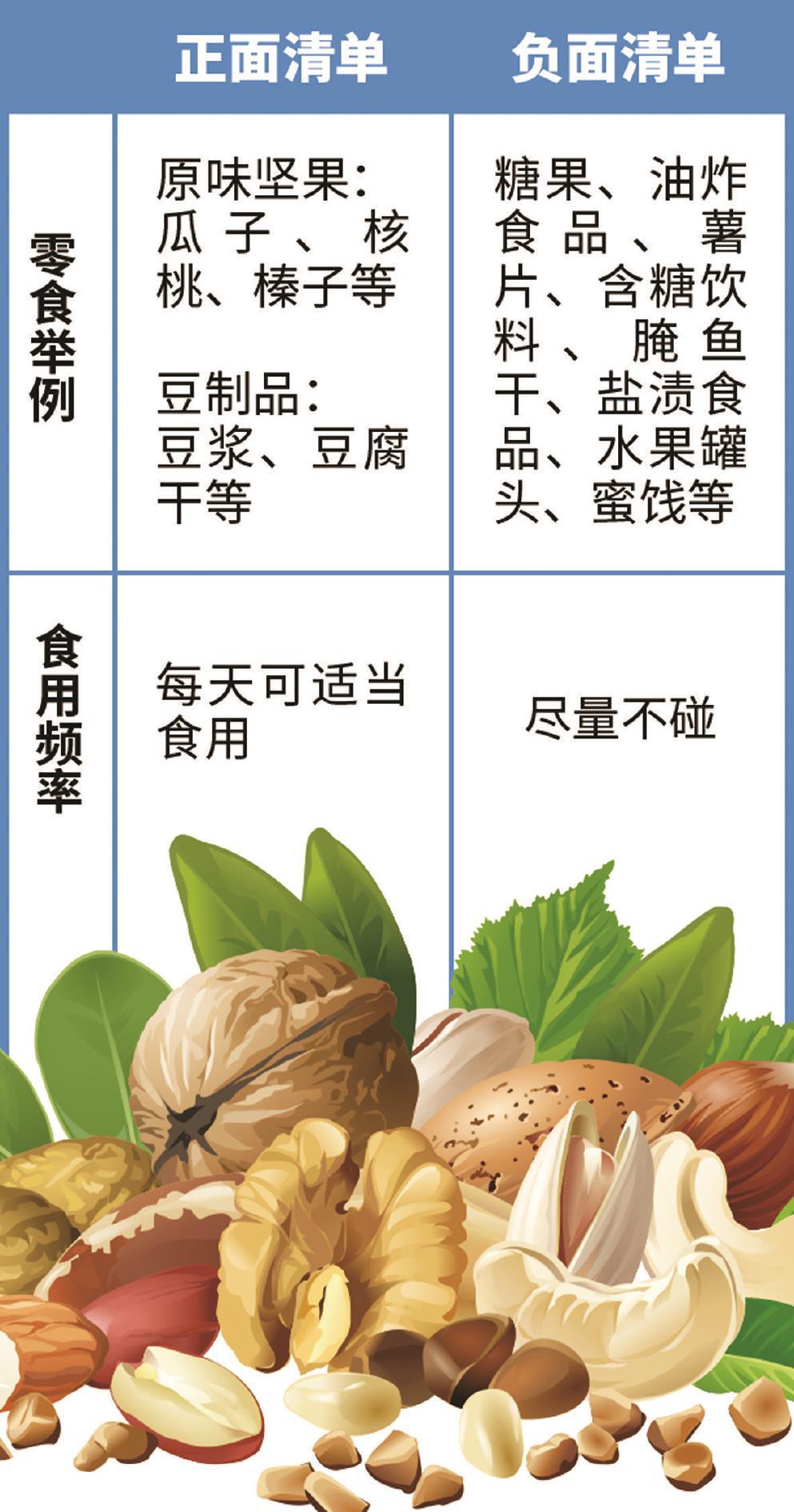 值得注意的是,正面清单中的零食每天可以适当食用,不可过量,负面清单中的零食则能不吃就尽量别吃。