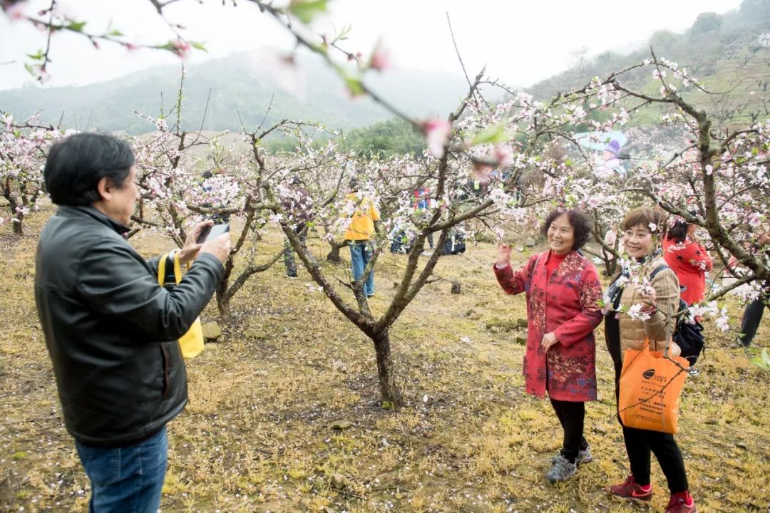 ↑ 镇上的桃花节开幕,抱团养老的老人们前去观赏桃花