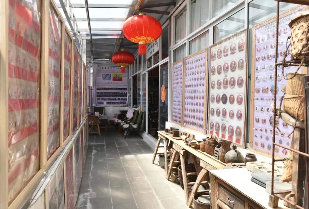 拐个弯的通道旁,展示的是生产劳动工具。这些旧物件都有着明显的时代特征和使用过的痕迹。镰刀、斧头、老锄头,犁耙、轭木、抽牛鞭,扁担、畚箕、旧箩筐,还有斗笠和蓑衣。样样都是我们使用过的,件件都像是从自己家中搬过来的。
