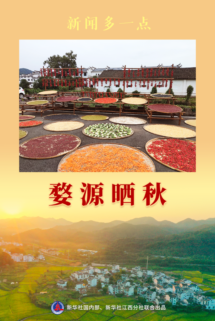 近日,江西省上饶市婺源县秋口镇王村的村民正在晾晒农作物。新华社记者 刘佳敏 摄