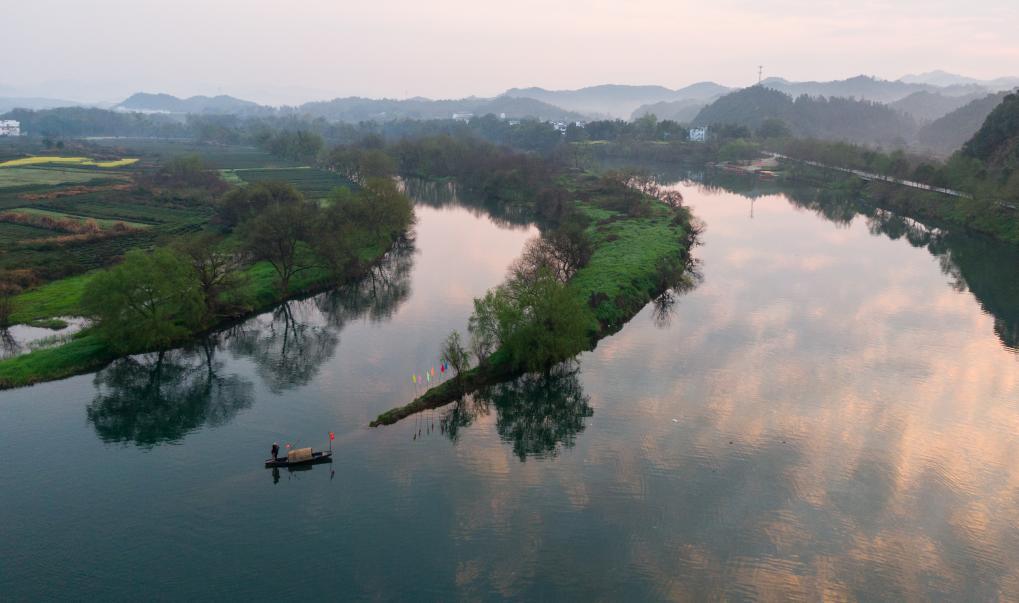 2021年3月15日拍摄的婺源月亮湾旅游公园,石门自然村坐落于此。新华社记者 胡晨欢 摄