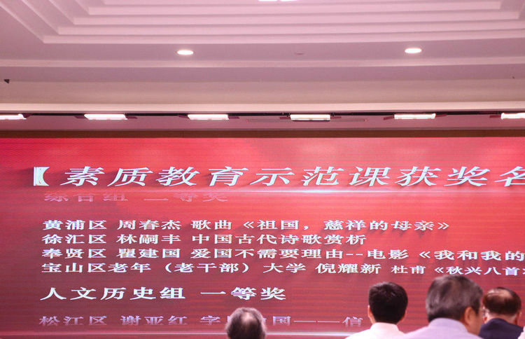 本次素质教育展示活动由“老年学校素质教育示范课”和“我心中最美老年学员”主题征文讲述两部分组成,其中示范课分“人文历史组”“书法绘画组”“音乐舞蹈组”“生活科技组”和“综合组”等,共产生10名一等奖,20名二等奖和34名三等奖和12个“优秀组织奖”;主题征文分“征文”和“讲述”两部分,共产生一等奖10篇,二等奖30篇,三等奖48篇和10个“优秀组织奖”。本人忝列其中,执教的《中国古代诗歌赏析 闻官军收河南河北》获示范课综合组二等奖,有幸应邀参加了本次大会。