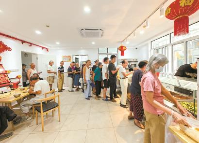 新福汇手工点心专门店颇受居民欢迎。今年,半淞园路街道将它纳入长者食堂,老人买中意的点心也可以使用助餐券。