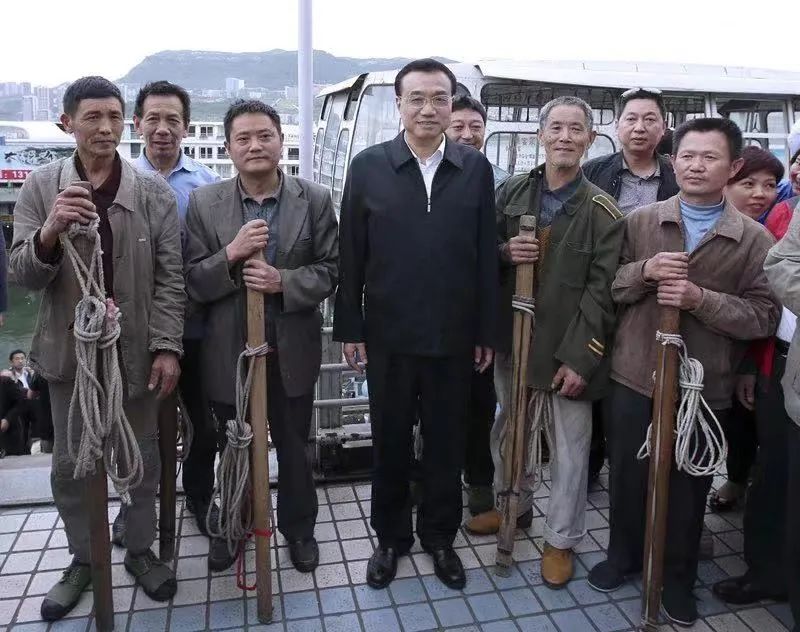 和重庆的棒棒军们合影,总理和棒棒们看上去平静而喜悦。