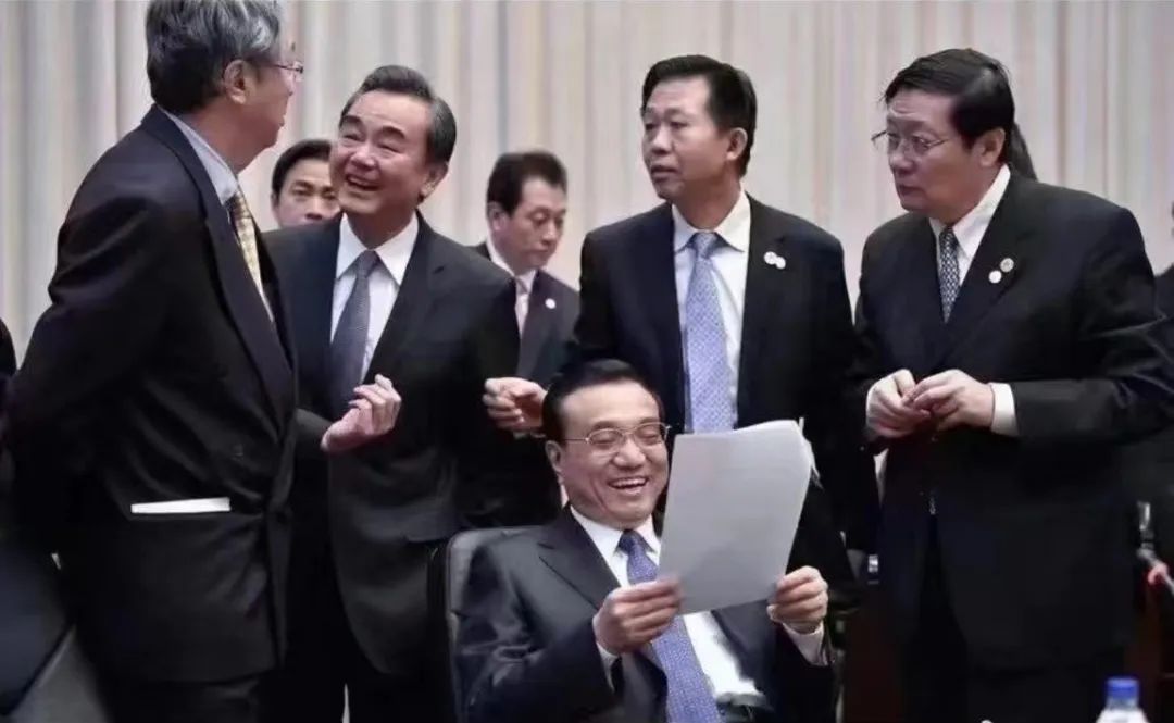 和政府的同僚合影,大家既有东方政治生态中上下级的秩序感,也有难得的同事之间的亲密感。