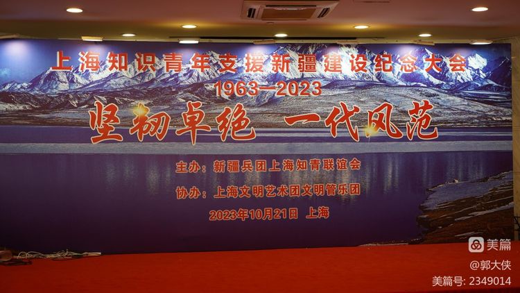 由“兵团上海知青联谊会”主办“上海文明艺术团文明管乐队”协办,主题为“坚韧卓绝一代风范”的纪念上海知青赴疆建设60周年庆典活动2023/10/21在江南村酒店隆重举办。