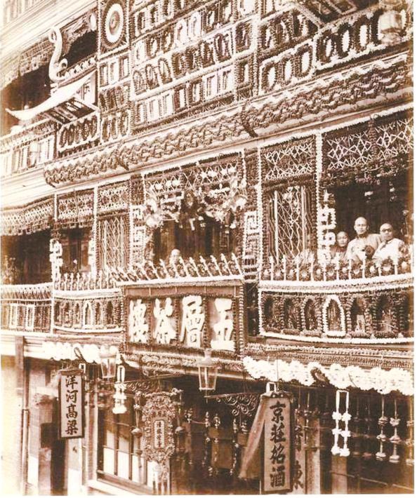 清光绪年间,有广东人在今天的河南中路广东路口开了一家同芳茶馆,除了茶水还供应茶食、龙凤礼饼及糖果,一大早还有鱼生粥飨客,中午则有各色点心,晚上供应莲子羹和杏仁酪。接踵而至的有怡珍茶居、同安居、小壶天、广东楼、安乐园等,茶饮、茶点、烟酒混合经营。有位老上海告诉我,南京路上有家易安茶馆,五开间店面相当宽敞,对面有家陶陶居茶馆兼售宵夜,是冠生园的创始人冼冠生创办的,后来广东郭家在这块地皮上造起了永安公司。