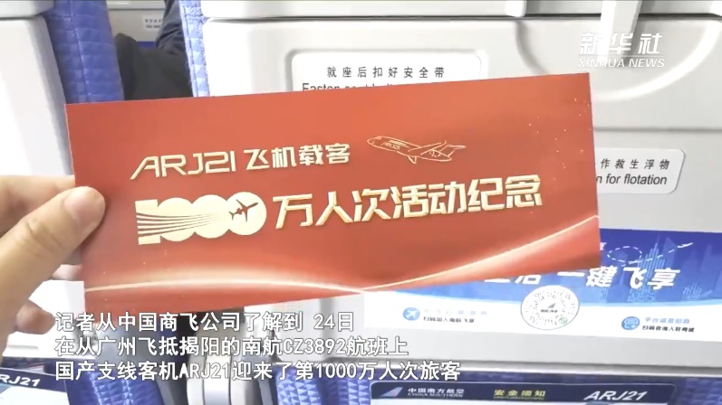 “1000万人次的旅客标志着我国民航事业的新里程碑,未来ARJ21飞机将继续承载着千万旅客的信赖与期望,飞向更广阔的蓝天。”机长高杰通过机长广播,分享与旅客们共同见证这一历史性时刻的荣幸。昨天,在从广州飞抵揭阳的南航CZ3892航班上,国产支线客机ARJ21迎来了第1000万人次旅客。