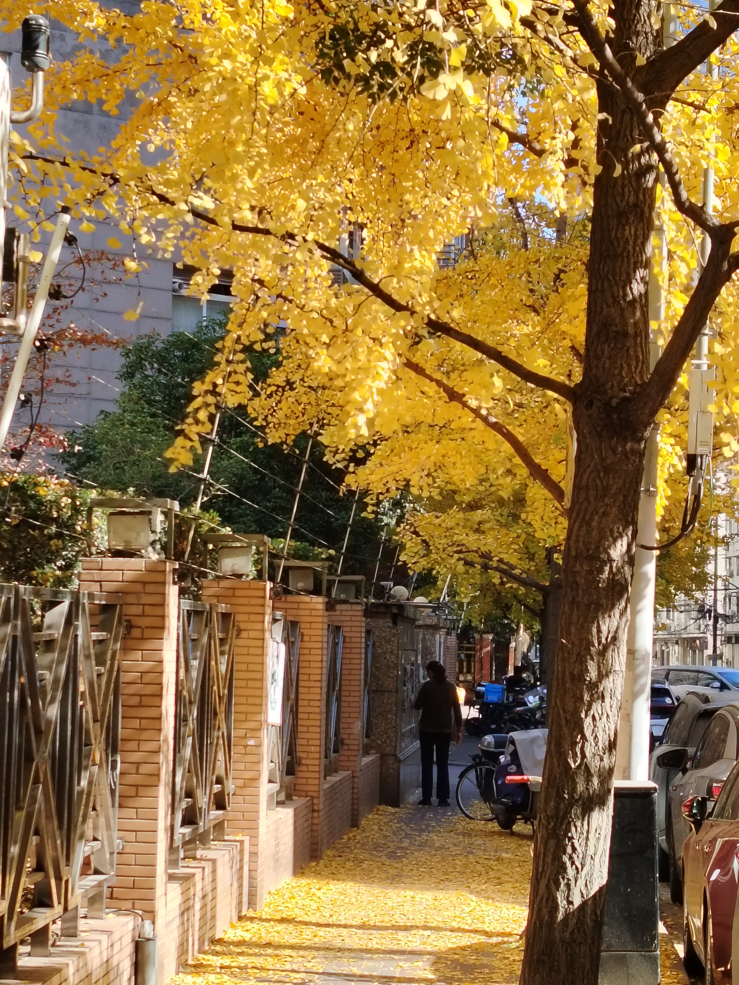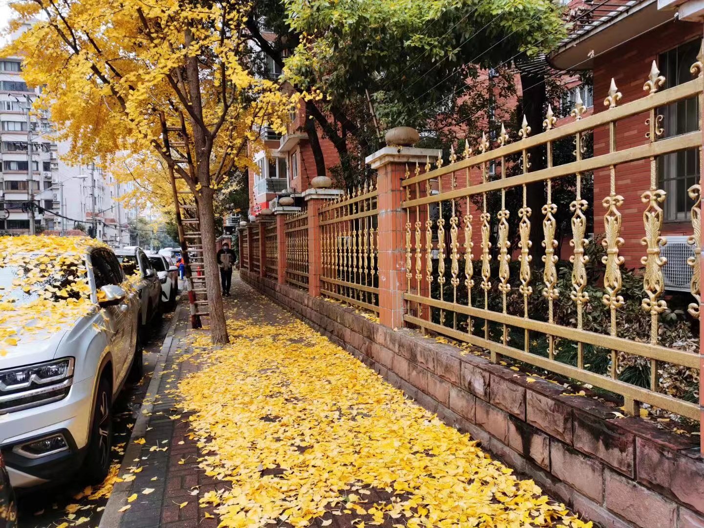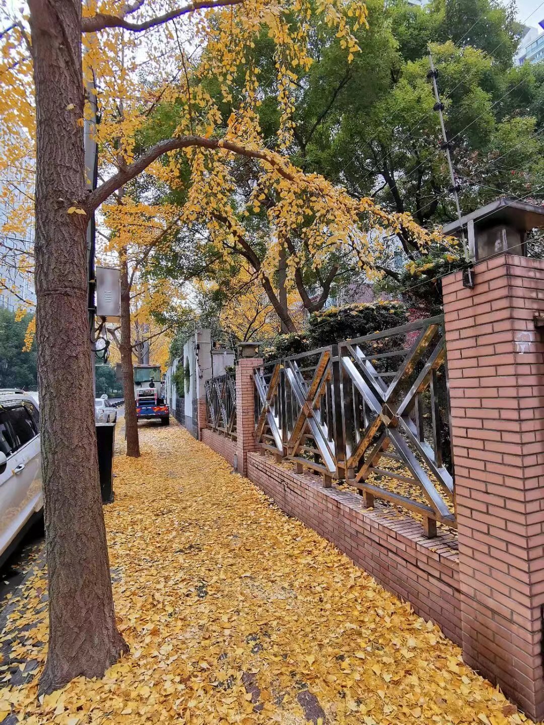 今天走过慈云街,进入上海电影博物馆,一片黄灿灿的银杏叶映入眼帘,平平常常的慈云街一下子亮堂起来,增添了生气、活力,美!很美!忍不住掏出手机咔嚓咔嚓拍了起来。