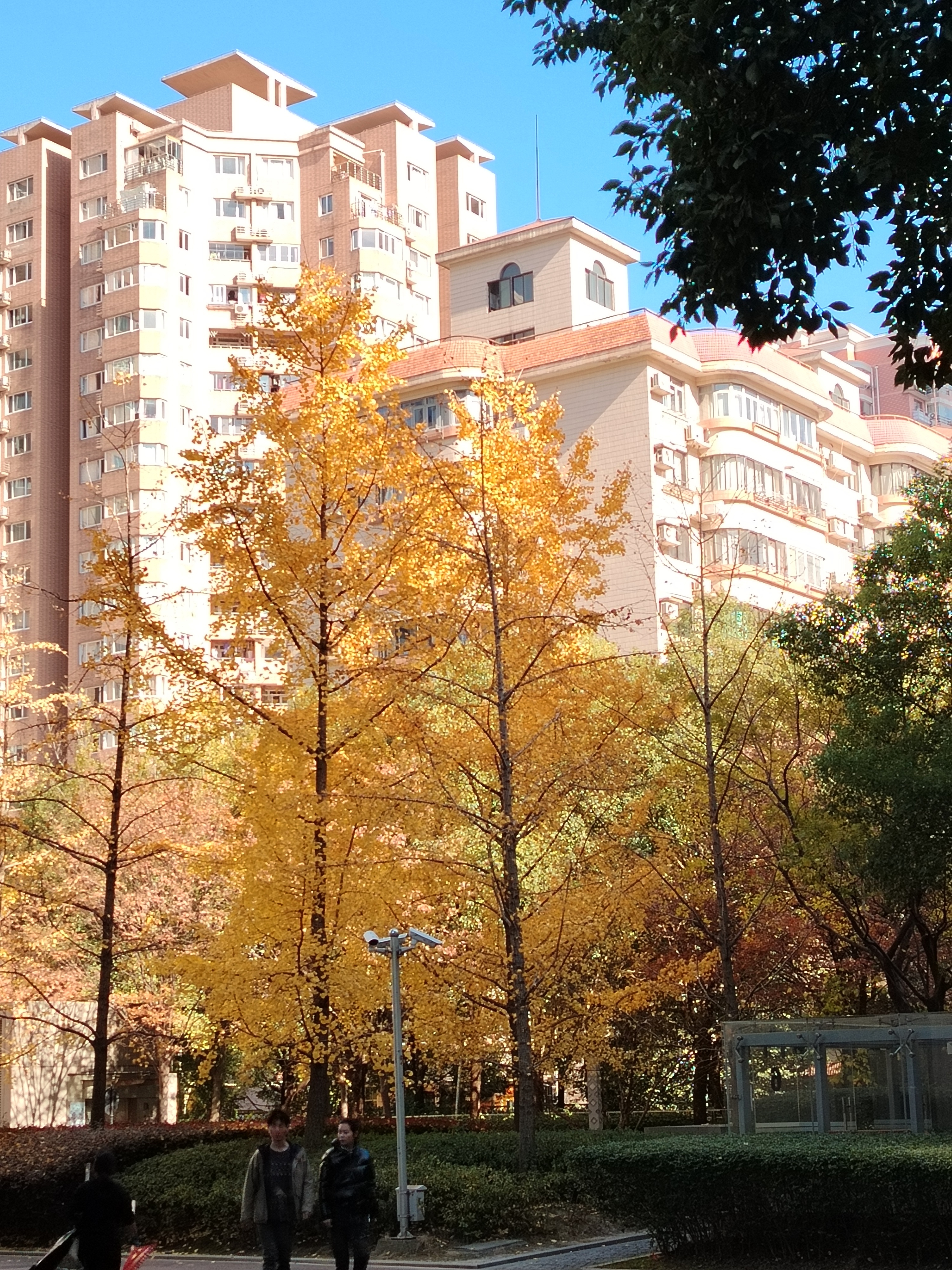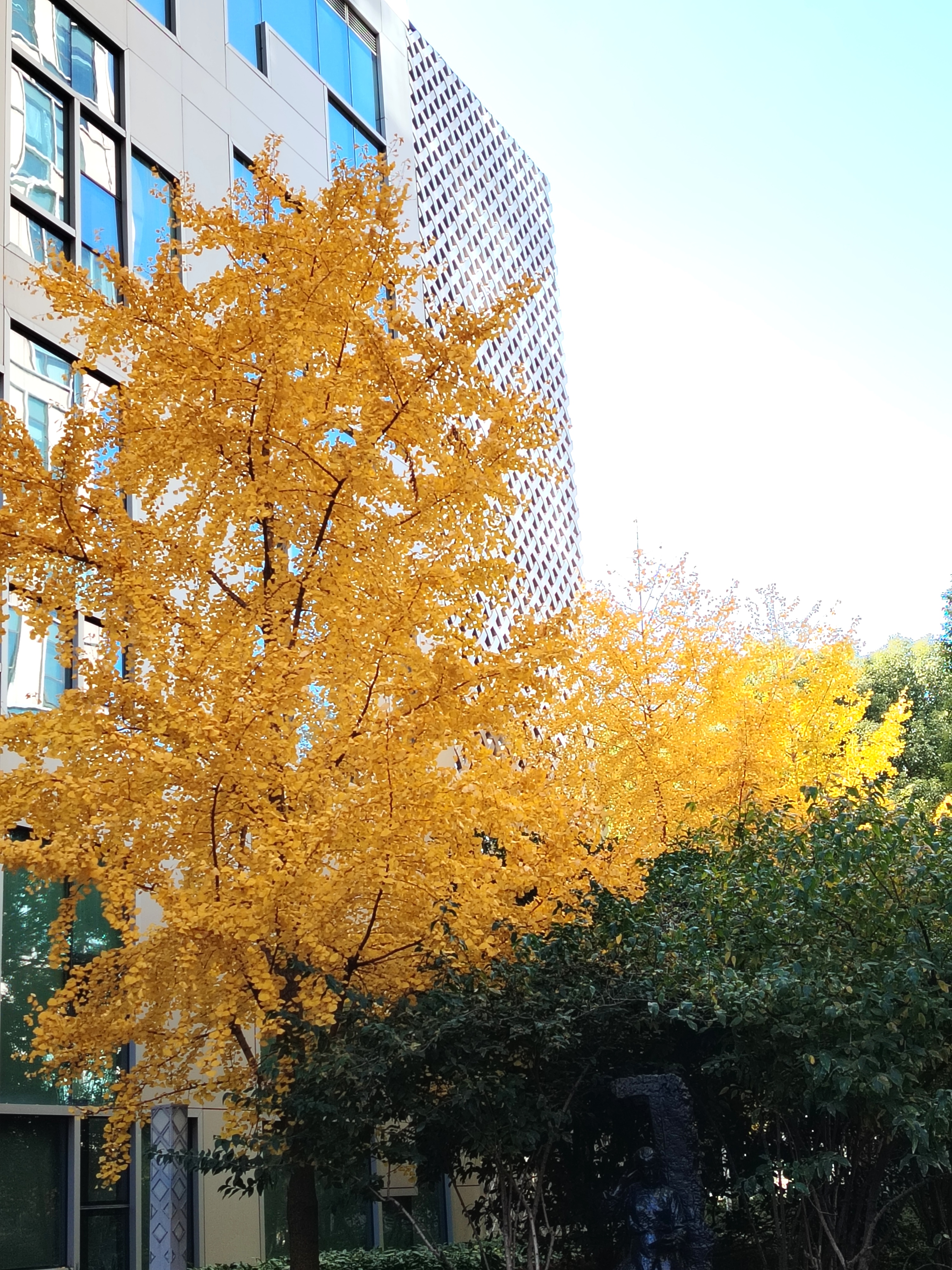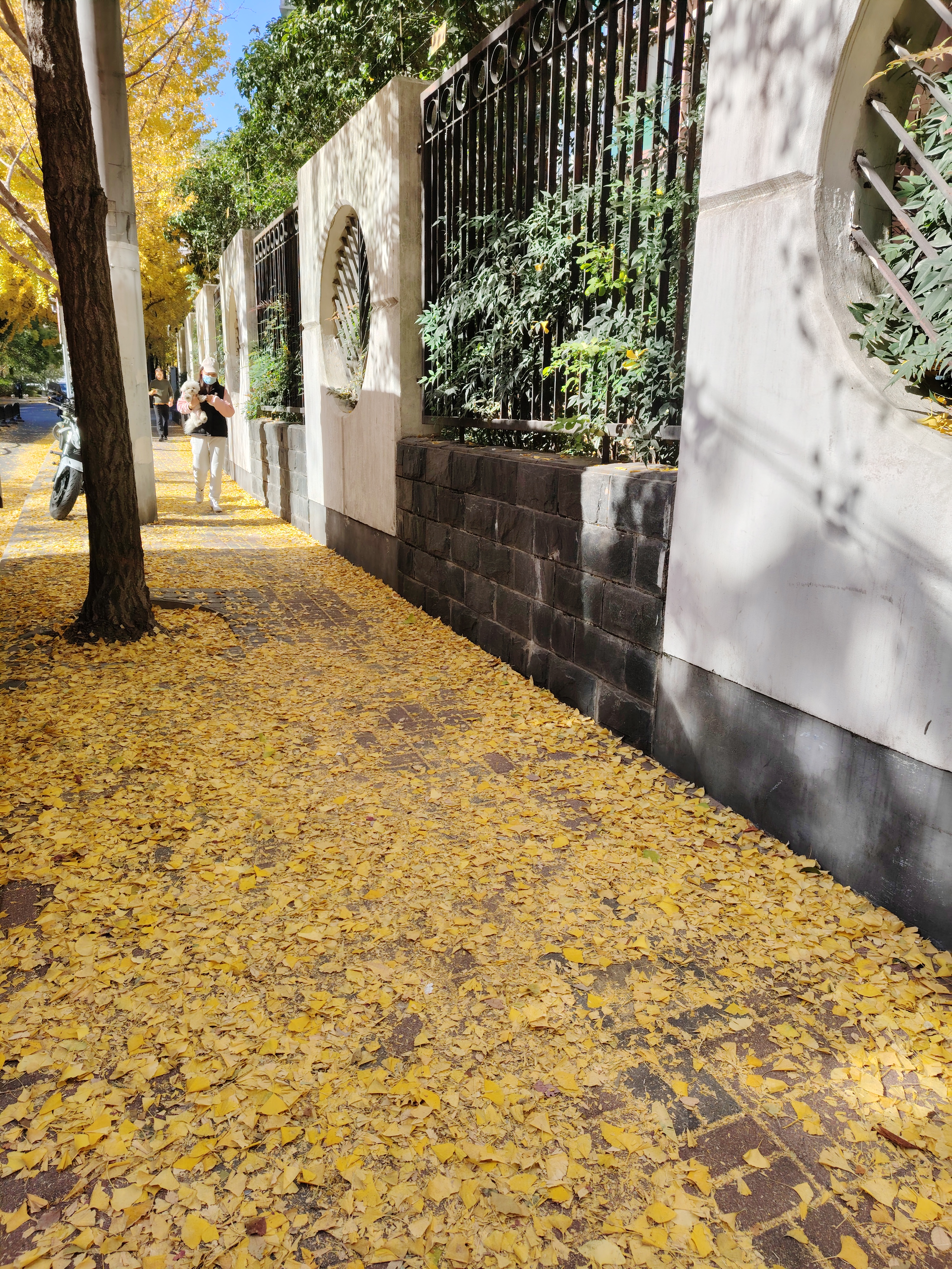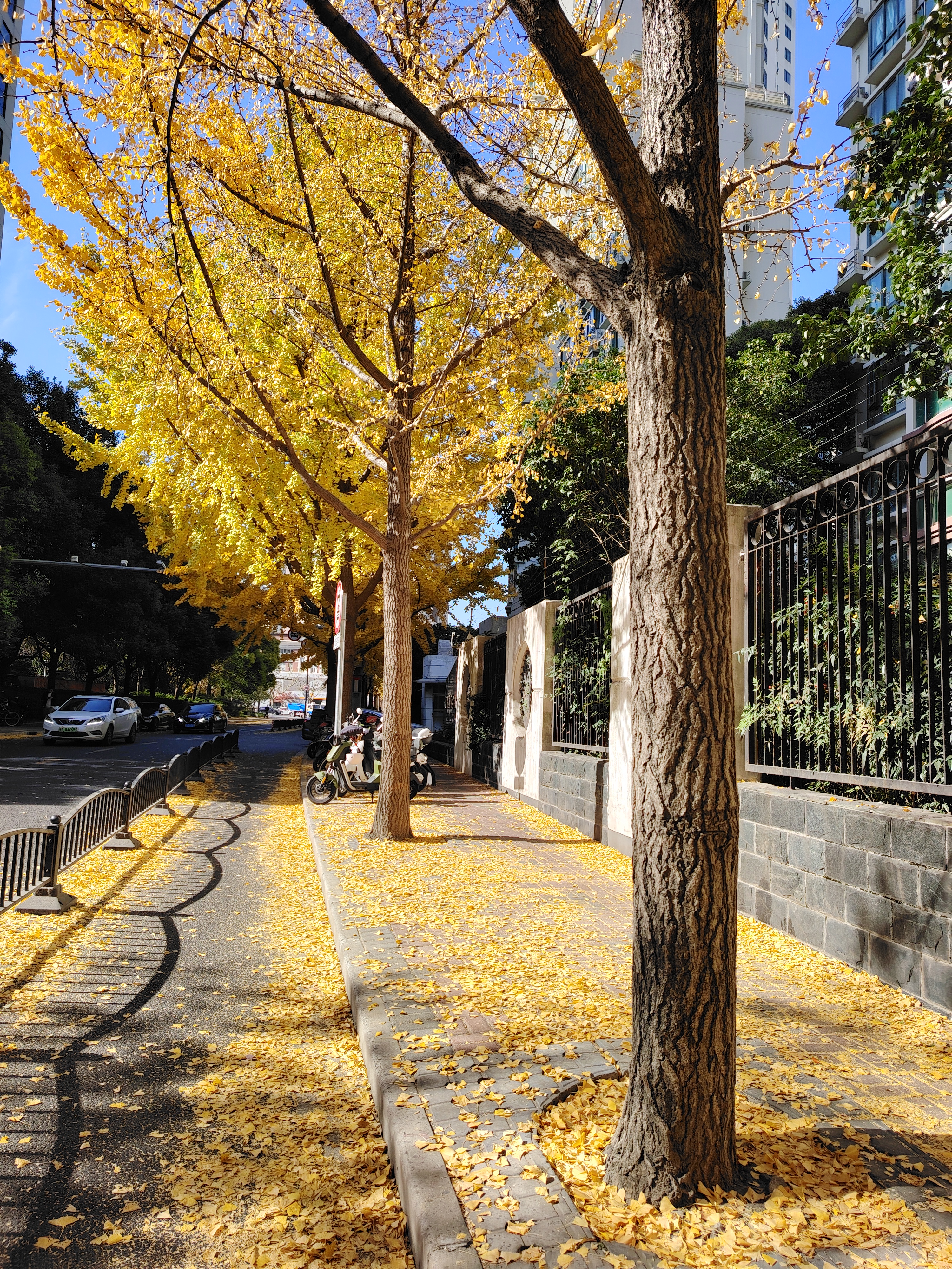 今天走过慈云街,进入上海电影博物馆,一片黄灿灿的银杏叶映入眼帘,平平常常的慈云街一下子亮堂起来,增添了生气、活力,美!很美!忍不住掏出手机咔嚓咔嚓拍了起来。