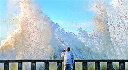厄尔尼诺影响美国加州地区,风暴掀起巨浪。 IC图