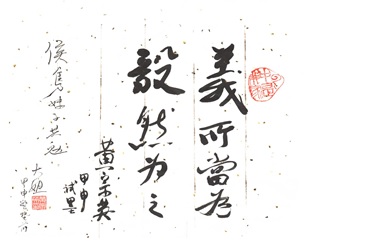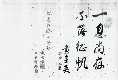 那天她还给邢燕子、侯隽题了词,给邢燕子的题词是“一息尚存不落征帆”,给侯隽的题词是“义所当为毅然为之”。
