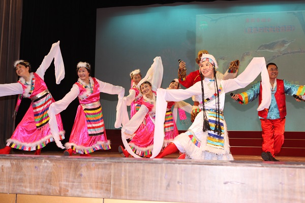 下午一点半,演出正式开始。第一个节目是朝鲜族长鼓舞:《长鼓跳起来》。知青演员们穿着艳丽的民族服饰,欢快地跳起长鼓舞,舞姿美丽,洋溢着地道的朝鲜族特色。接着,是藏族歌舞《最美的歌》。在一位男高音演员的嘹亮歌声中,10多位女演员穿着藏族服装翩翩起舞,美不胜收。往下,一个接一个舞蹈节目轮番上演:《江山》、《情深意长》、《欢乐康定》、《365个祝福》……