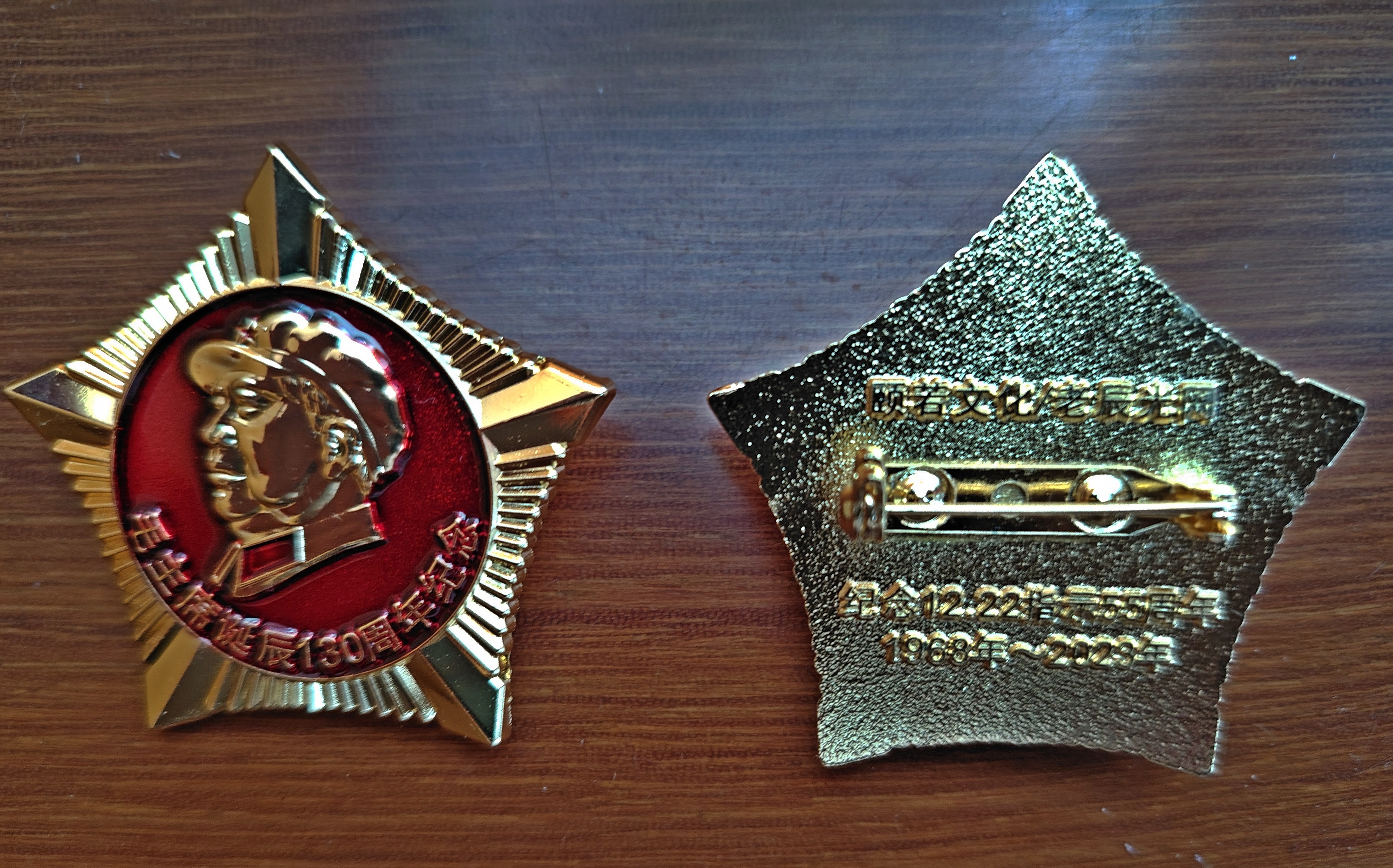 上海颐若文化传播有限董事长赵大砥先生,为纪念毛泽东同志诞辰130周年亲自设计制作了纪念章,由工作人员在演出前赠送前来观看演出的观众,以及参加演出的演员和演职人员。