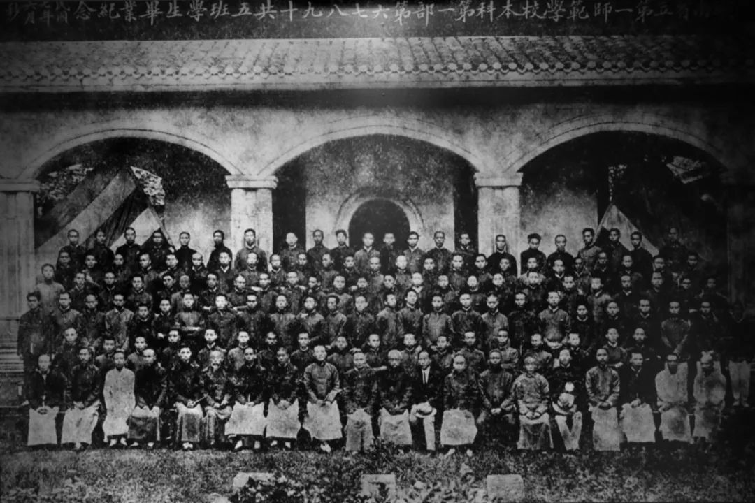 ·1918年6月,毛泽东(最后排左二)从湖南省立第一师范毕业时与同学的合影。