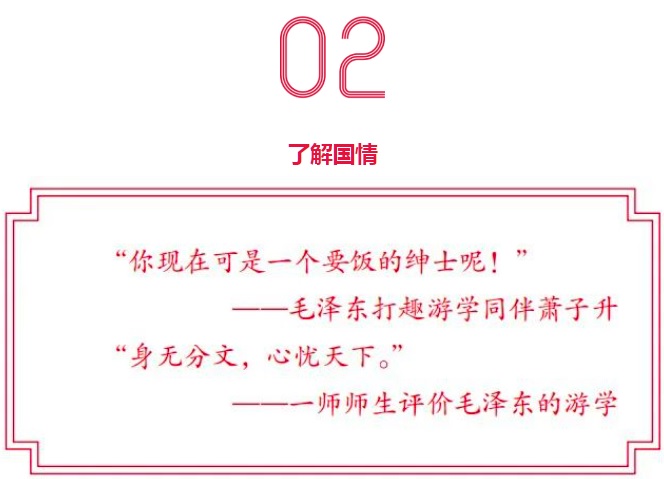 沿途,毛泽东不断了解风土人情和老百姓的生活情况,写下了许多笔记。回到校园,师生们传阅笔记后,纷纷赞誉他是“身无分文,心忧天下”。“游学的经历大大激发了毛泽东等进步青年探索救国救民道路的热情。”颜蒹葭说。
