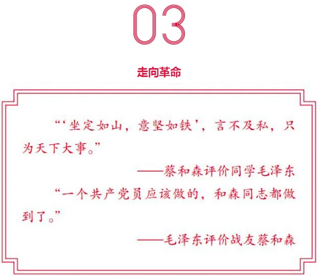 彼时,长沙各个学府的有志青年中最有名的当数蔡和森。13岁时,蔡和森为了谋生到辣酱店当学徒,这份经历让他看到了底层人民的艰苦生活,立志救国救民。他与毛泽东相识在一师,两人都饱读诗书,又有相同的志向,很快便成为亲密的朋友。