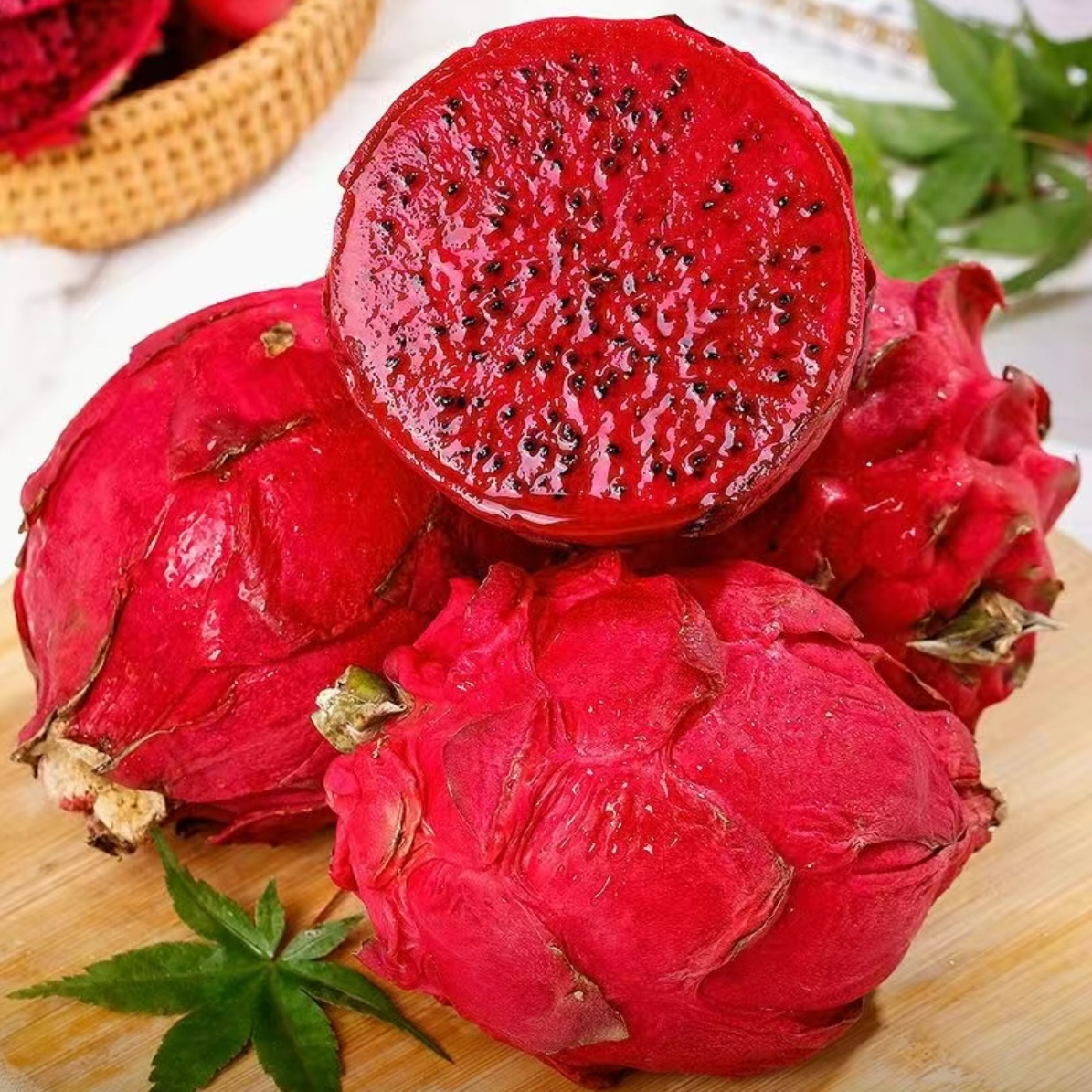 火龙果主要品种有红皮白肉、红皮红肉、黄皮白肉3种,目前还有少量的果肉双色、粉色品种。燕窝果也是火龙果的一种,属于有刺黄皮白肉,果肉半透明,果肉结构呈细丝状,汁水丰富、润喉滑口、清甜无比。不管是红心还是白心火龙果,营养成分都是类似的,区别在于红心火龙果的甜度相对较高(燕窝果除外)、口感更软糯,甜菜红素比白心火龙果略胜一筹。