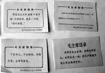 他主动随和的与我聊天,把我带到他的办公室里,拿出当时很热门的“参观井冈山纪念”的橡皮图章,让我任意的在一路上收集到的一大叠语录卡片(与现在名片差不多大小)上盖章。