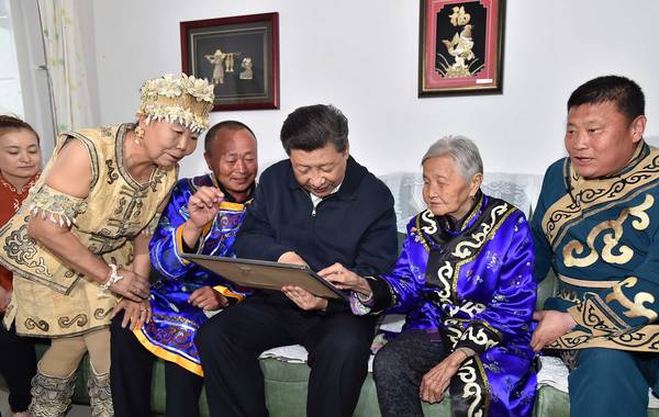 随后,习近平来到赫哲族村民尤桂兰家中看望。得知一家人现有耕地150亩、渔船1只,通过捕鱼、流转土地等年纯收入约8万元,习近平很高兴。年逾八旬的尤桂兰拿出自己当年在北京中南海受到毛泽东主席等党和国家领导人接见时的照片给总书记看,习近平称赞她是个老先进了。习近平指出,在祖国大家庭里,56个民族是亲兄弟。全面建成小康社会,一个民族都不能少。各族人民齐心协力、勤劳奋斗,中华民族一定会更加兴旺发达,各族人民生活一定会更加富足美好。