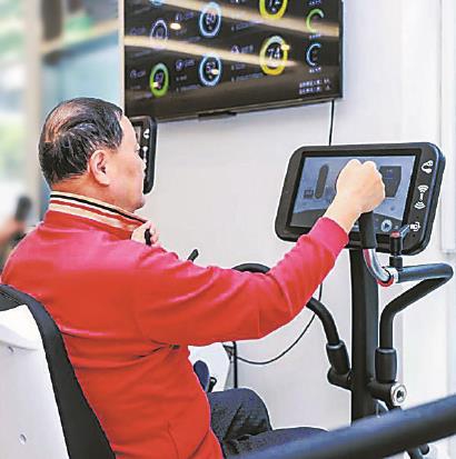 殷行街道长者运动健康之家,老人在运动时的身体数据被实时监控,保障他们健身安全。