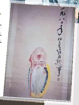 赵丹黄宗英十分守信,我回长沙不久,便收到了赵丹画的老寿星,一尺多宽、三尺多长的宣纸上,白胡子老翁手持红杖,头如寿桃,长鬓拂地,慈眉善目,手书“一九八〇年初夏赵丹戏笔”,并有“阿丹”小印,只是未写我的名字,因为是要制版在杂志上发表,他答应下次去沪时再补写。