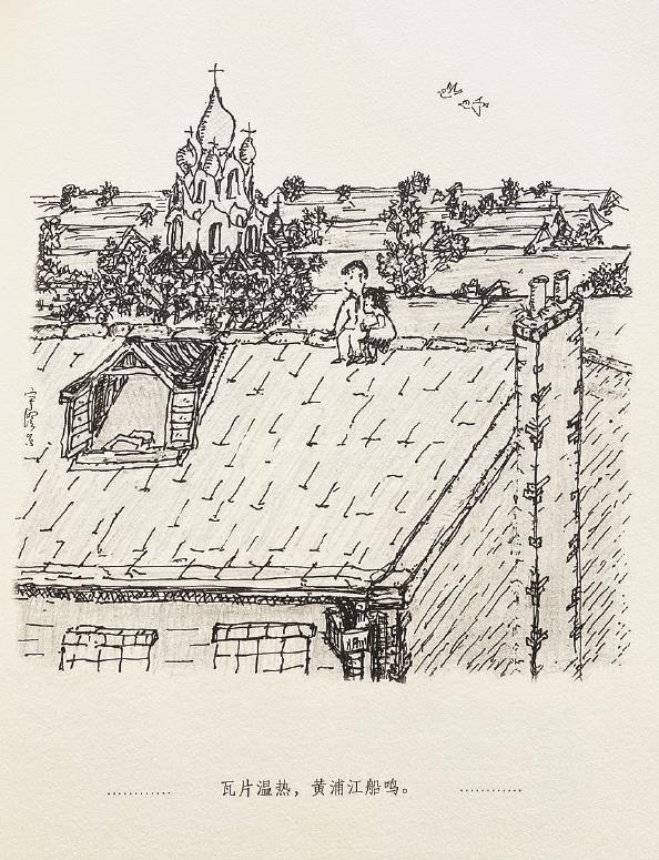 瓦片温热,黄浦江船坞 金宇澄 绘