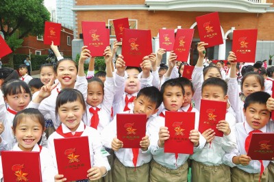昨天上午,“我是红领巾,我快乐,我光荣”———2016年上海少年儿童庆“六一”主题活动在静安区第一中心小学举行。为了以创新的方式培养少先队员组织光荣感和归属感,今年“六一”全市4万余名新队员将首获上海率先试用的 《少先队员证》暨红领巾成长手册,内容包括中国邮政发行的第一枚以“入队纪念”为主题的个性化邮票、新队员戴上红领巾与父母合影的个性化照片插页,以及新队员入队时的幸福感受和父母的亲情寄语。