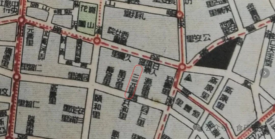 ①1925年商务版《上海指南》城厢租界地名表:三元里(美界文监师路坐北朝南,吴淞路西)。