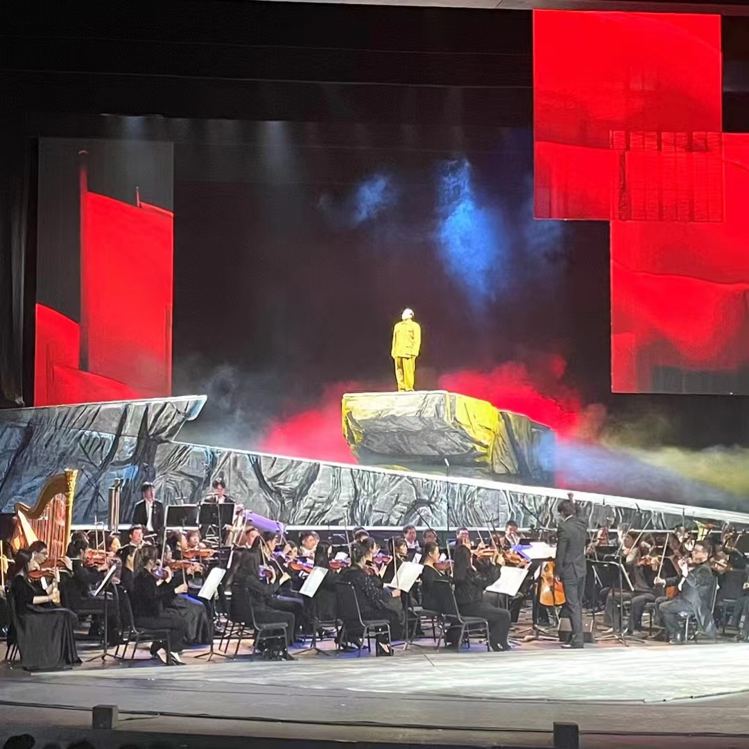 乐队贯穿全局,连接起朗诵、歌唱表演。衬托主题、背景,伴奏演唱、朗诵,演奏渲染气氛。