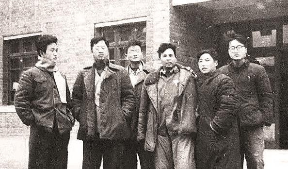 1959年1月编写《新诗发展概况》,在中国作协和平里宿舍楼前。左起:殷晋培、刘登翰、洪子诚、谢冕、孙玉石、孙绍振