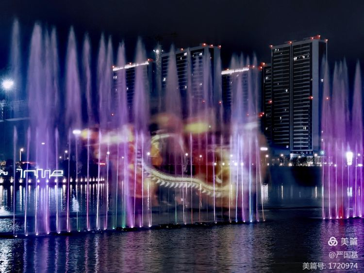 湖面上的荷花、鲤鱼交相呼应,一条百米长龙正扬天长啸,气势非凡。