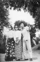 数日后,我和朋友到小街去玩,骑着单车,因颠簸,书包架折断了。转而,我们骑到公社的拖拉机站,欲借工具修理。车间里有一位长得眉目清秀的少傣正在开车床。这时对面屋里传来一个声音:“比郎香,马来进干弯考了(香大姐,过来吃午饭)”。我顺着声音看到屋里的人,正是那天新华书店门口的大眼睛。我大着胆子和她搭讪起来,发现她并不忌讳我,便试着跨进门槛,在她的招呼下抓了一团糯米饭,一支烟没抽完,我们的话题已展开了。噢!原来大眼睛姑娘叫玉娣,初中毕业后在站里做修理工,家住景龙寨。开车床的叫玉南香,是曼飞龙人。她们同住在拖拉机站,是好姐妹。我们厚着脸皮,半开玩笑地问她们愿不愿意嫁给汉族,她们只是笑着说:你们不会要我们。其实她们心里很愿意嫁给知青,尤其是上海人。问为什么,她们说上海城市大,不用爬山,男人很会做事,衣服穿得又好看。但若出嫁,得有个条件,必须给她们一块上海牌女式手表、“