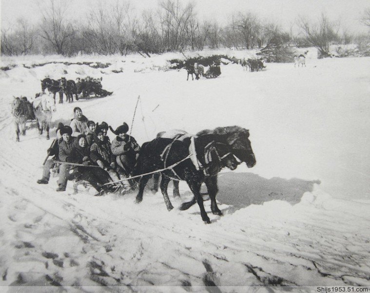 三幢老屋草苫顶,职工家属搬来住,灯光队里烟火浓,牛马鸡犬拥沙路。白天小村静悄悄。田里笑声喧,犁铧翻过,掀开黑土新一页,闪烁阳光雨露新冀望。岗上间伐树木,斧砍锯拉竞赛声,犹如知青挑战自我不甘落后的粗犷音符。