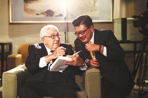 由于基辛格博士新著《论中国》中文版刚刚面世,我们便从这本书说起。老人家说:“我在《论中国》一书中最想传达的信息是,所谓发展中国家被发达国家抑制和反对的旧观念,在今天这个时代已不再具有价值。中美两国也正处于一个关键时刻,彼此合作可以给世界带来进步与和平。而中国的平稳发展更有利于在全球领域解决某些基础问题。”正如许多评论者所言,中美关系是基辛格博士重要的“政治遗产”,尽管看似“老生常谈”,但说起1971年那次“奇幻之旅”,老人家的眼神中仍闪现无法掩饰的激动:“我登上飞机后才清楚这是一个历史性使命,事实上,我并不知道自己究竟会做什么,因为之前没有任何与中国外交官员接触的经验。而我的两个秘密随行人员看到身着中山装的中国官员时,也异常紧张。但是,当我们与周恩来总理相见,紧绷的神经才有一丝放松。他那充满智慧,且周到、耐心的工作作风让我们得以集中精力投入到谈判中。我觉得我们彼此有一种精神上的尊重之感。而毛泽东主席更是一位气场强大的大国领袖,他在会见尼克松总统时所说的‘让我退一步等于退一万年’振聋发聩。两位领袖都为中美合作得更紧密而做出重大努力。”记得当年《时代周刊》以戏谑的笔调写道:“凡是眼睛管点用的人都能看出,基辛格从中国回来胖了五磅。”这位原本喜爱中餐的政治家在北京自然饕餮了一番。不过,他却似乎对茅台酒更感兴趣,还饶有兴致地和我分享了一段轶事:“访问中国时,我并不喝酒。但是,逗留北京期间,总共参加近50场宴会,每次都要举杯庆祝,我真的是为我的国家喝了很多浓烈的酒,但是很享受。尼克松总统回国后,想向女儿证明茅台酒有多么浓烈,就把酒倒入一个盆里,放在客厅的桌子上,并用火柴点燃。当时我也在那里,结果茅台酒瞬间被点燃,连盆都烧碎了,火蔓延整个桌子,他们不得不叫白宫火警前来灭火。”谈及这段往事,向来不苟言笑的基辛格博士脸上也泛起了笑容。除了政治议题,我们也谈及生活话题,譬如如何看待老年退休问题。那一年基辛格博士已九旬高龄,远离政府公职多年,却从未淡出公众视线,是名符其实的政坛常青树。虽然已近期颐之年,照理可以过起含饴弄孙、颐养天年的休闲日子,但他仍奔走于世界各地,并埋首著书,在他看来,工作就是享受生活:“我从不理解为什么人们觉得退休是一件很好的事。很多人渴望退休,而我却享受工作,我为工作付出的心血和精力,绝对不是牺牲。恰恰相反,那是一种享受。”正是拥有如同“永动机”那样的激情与狂热,基辛格博士才能始终以敏锐目光审视变化多端的国际局势,并及时开出应对“药方”。因此,沃尔特·艾萨克森在《基辛格传》中谈到基辛格博士“政治遗产”时说,他的才华核心“就是能看到不同事件之间的联系,并把所观察到的规律加以概念化。就像蜘蛛网上的蜘蛛,他能感觉到,有时过于敏锐地感受到,时间上某一个角落的一个行动会在别处引起什么反响,他心里的强项在于他有能力在不同水平—从宏大到微小—运作。”采访结束后,基辛格博士还在我随身携带的中文版《论中国》扉页签名留念……