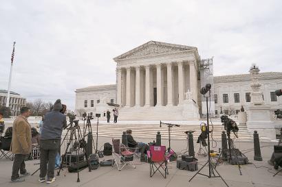 3月4日,媒体在美国华盛顿的美国联邦最高法院前报道。新华社发