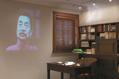 在虹口区溧阳路1367号二楼,通过数字化技术进行环境复原,放置着书桌、书架、藤椅、老式台灯等,配合投影,让人联想起鲁迅先生在此读书的样子。本报记者 蒋迪雯 摄