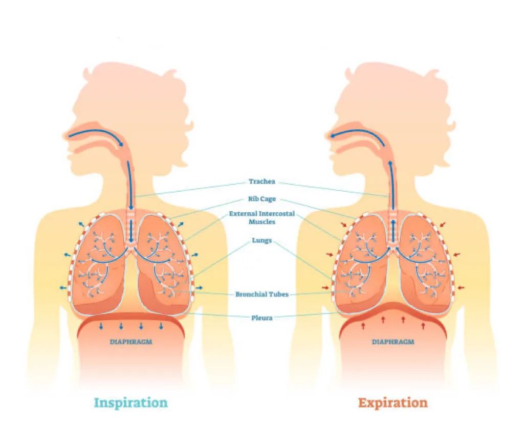 膈神经与其它运动神经将“冲动信号”发送至胸廓周围的肋间肌以及下方的膈肌,由此形成了人体呼吸最基本的“节律”。