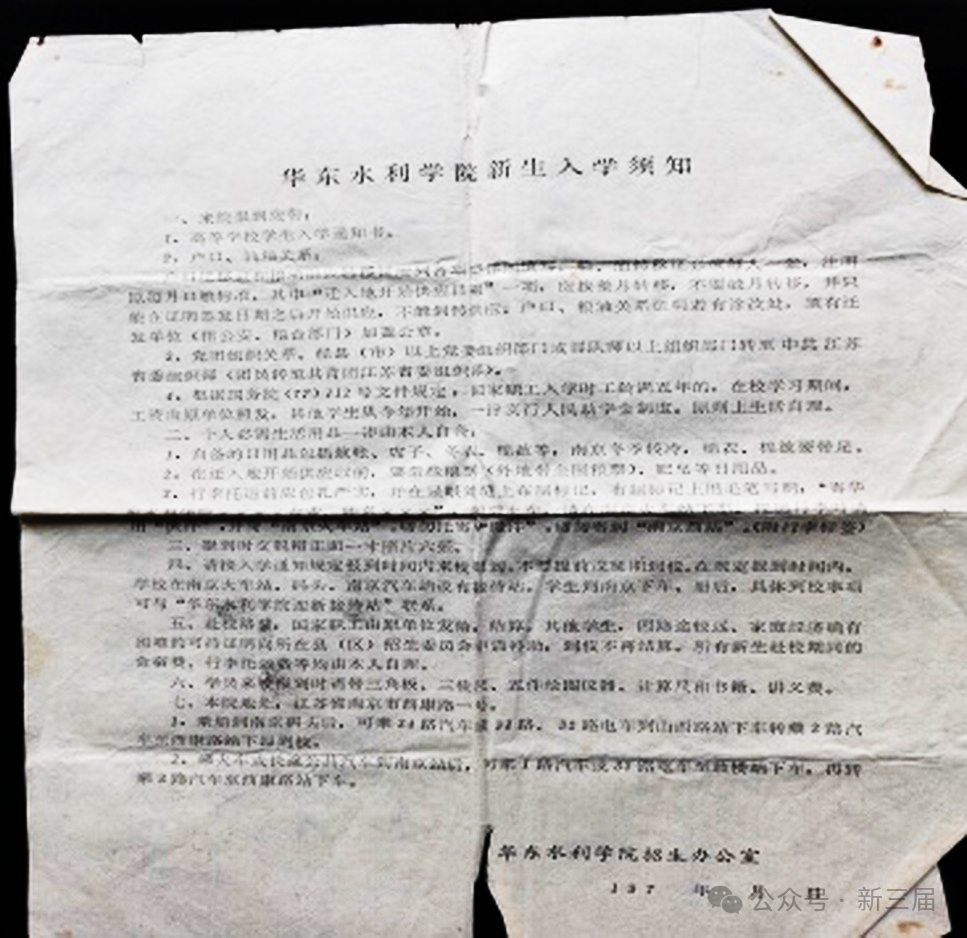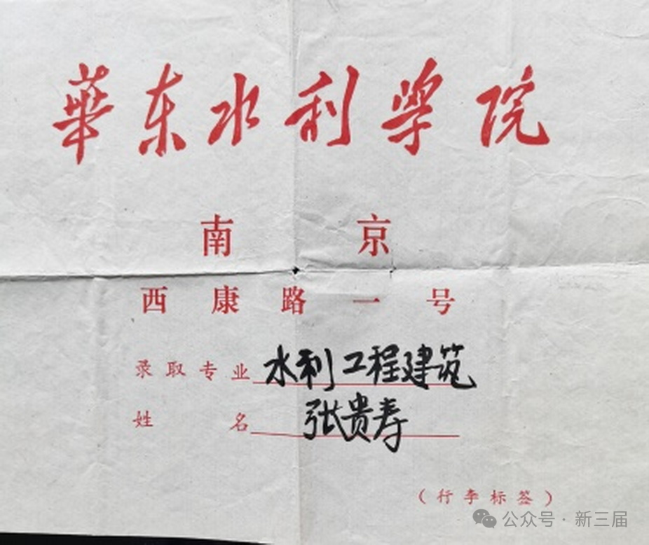 大概是2月25日,校长送来录取通知书。我被录取在华东水利学院水利工程建筑专业(现河海大学,“文革”前全国64所重点大学之一,现为211工程大学,双一流大学)。成了1977年全省录取人数最多的绍兴县的154人之一。